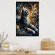 Ein lebendiges Gemälde, das die Essenz einer Katze vor einem auffallenden schwarzen Hintergrund einfängt und ihr anmutiges Verhalten und ihren intensiven Blick zeigt.