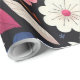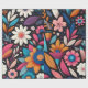 Ein Kaleidoskop von Blüten in lebhaften Schmucktönen - Korallen, Kobalt, Kanaren und Pflaumen - strahlt in einer spiegelnden Blumenstruktur über einen dramatischen schwarzen Hintergrund aus. Dieser romantische und kühne Garten verleiht jedem Dekor und Geschenk-Design Eleganz.