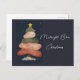 Eine zeitlose Urlaubskarte mit dunkelblauem Hintergrund und einem leuchtenden Weihnachtsbaum - ideal, um warme Wünsche mit Eleganz zu vermitteln.
