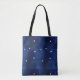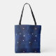 Mitternachtsblaues Marineblau-Design mit weißen abstrakten Sternen niedliches Nachthimmeldesign. Dunkelblaues Farbschema Blau und Weiß.