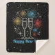 Ein festliches Neujahrsdesign mit feierlichen Drinks und farbenfrohen Feuerwerken, ideal zum Klingen im neuen Jahr.