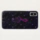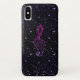 MitternachtsGlitzer-MusikClef iPhone X Fall. Ein dunkler Hintergrund mit einigen beleuchten glänzende Glitzern, wie Sterne nachts, wenn ein dunkler lila rosa musikalischer dreifacher Clef in den Hintergrund verblaßt. Ein großes Geschenk für Ihren Lieblingsmusiker oder Musikfreund.