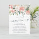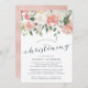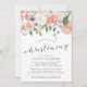Elegante und moderne Blumentaufe oder Taufeinladung mit einem Bouquet von sanften pastellfarbenen Rose, Peonies und Hydrangeas in den Farbtönen Rosa, Pfirsich und Creme, mit üppig grünen botanischen Blätter und Eukalyptus. Persönlich gestalten Sie Ihre Taufdetails in eleganter, rauchblauer Schrift mit handgeschriebener Stilkalligrafie. Umfasst Platz für die religiöse Zeremonie und ein Party oder Empfang, dem man folgen kann.