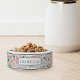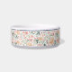 Verwöhnen Sie Ihren Hund mit unserer personalisierten Hundeschüssel mit einem blumengeschmückten Aquarellmuster aus pfirsichfarbenen Pfannkuchen, rosa Rosen und cremig weißen Hydrangeas mit üppigen Akzenten im Grünen. Personalisieren Sie mit dem Namen Ihres Hundes auf der Vorderseite in reichen Mitternacht Marine blau.
