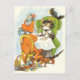 Niedliche Vintage Abbildung zweier Katzen, die an einem Tisch sitzen und Karten spielen. Ein schwarzer Vogel sitzt auf der Rückseite des Stuhls. Eine Katze trägt eine Brille und die andere trägt einen Hut.