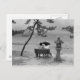Schwarz-Weiß-Fotografie von Paaren, die den Meerblick von einem Strand auf der heiligen Insel Miyajima in Japan genießen.