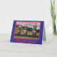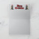 Auf der Osterinsel tragen drei Moai Weihnachtsmannmützen als Weihnachtsmann und sein Schlittenklettern am Himmel.