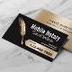 Mobile Notary Service Loan Signing Agent Gold Feather Pen Business Cards.