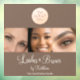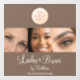 Lashes and Brows Studio Window Cling - Mocha Brown Cream Script Font Your Logo Here 3 Photo Lashes and Brows Business with name and social media handle.