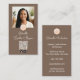 Mocha Cream Lashes and Brows Business Card with QR Code, Add Your Photo, and Add Your Logo. Personalize with Your Name on the front and your Contact info and social media name/handle on the back. This particular card's color combination is in our Mocha Brown with a Cream/Ivory Script font that is both Professional and Chic!