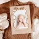 Mocha Doodle Bow Frame Birth Announcement Foto Ankündigung