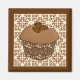 Magnet als Cupcake mit Mocha-Zuckerguss, überzogen mit schokoladenbedeckten Kaffeebohnen, dekoriert, schokoladenbraun und beige, auf einem gemusterten Hintergrund aus leichter Schokolade und beige Spitze