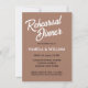 Einfache Einladungen zum Hochzeitsessen mit Probe in Weiß und Schwarz, stilvolle Schrift auf mochafarbenem Hintergrund. Bearbeiten Sie Ihre Einladungen, indem Sie Namen, Datum/Uhrzeit, Ort und Kontaktinformationen mit Ihren eigenen Namen ersetzen. Wählen Sie Ihre Einladungsgröße und Ihren Papierstil aus.