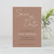 Einfache Hochzeitsfeier rette den aktuellen Einladungen, die auf einem mochafarbenen Hintergrund mit schwarz-weißer Schrift dargestellt sind. Bearbeiten und ersetzen Sie Namen, Datum und Position mit Ihrem eigenen. Wählen Sie Ihre Einladungsgröße und Ihren Papierstil aus.