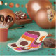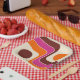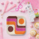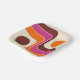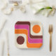 A dynamic abstract composition featuring two bold circles—one orange, one dark brown—linked by three flowing bands in orange, pink, and brown. Each stripe is bordered by crisp lines, curving gracefully across a soft beige background. The interplay of shape and color evokes 1970s graphic design, balancing visual rhythm with sculptural simplicity. The result is a harmonious, retro-inspired piece that captures motion, contrast, and editorial clarity.