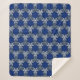 Gemütliche Sherpa-Decke für die Wintersaison mit einem Mod-Muster von Riesenschneeflocken in Blues und Grau.