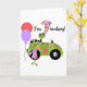 Mod Frogs 1. Geburtstag Design mit vielen Polka-Punkte, Ballons, einem coolen grünen Auto und grünen Fröschen!