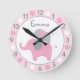 Mod Pink Elephant Personalisierte Kinderzimmer Wal Runde Wanduhr