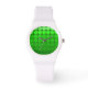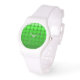 Mod Pop Dots in Gradientenkreistönen von Limon bis Kelly Green, auf einer weißen Sportuhr.