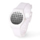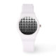 Mod Pop Dots in Gradientenkreistönen von hellgrau bis schwarz, eine sportlich weiße Uhr.