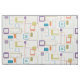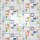 Aktualisieren Sie Ihr Projekt mit diesem modernen quadratischen Muster mit einem Retro Vibe. Farben sind Tönungen des Pfaublaus, der Mandarine, der Olive und des Lila.
