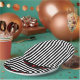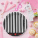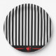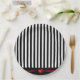 Unterhalten Sie sich stilvoll mit diesen schönen Tellern. Dieses Mod-Design hat senkrechte schwarz-weiße Streifen mit einem Hauch von roten Details und einem niedlichen roten Herz.