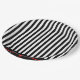 Mod Schwarz-Weiß Streifen mit hellrotem Herzen Pappteller