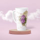 Grande Mug Latte. Corset de mode aux fleurs violettes. Quelques coeurs bijoux sont visibles sur les fleurs.