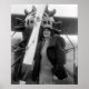 Hübsche Frau, die im Bolling Field einen Kanzler des Vintagen Flugzeugs der 20er Jahre hält. Schönes altes Mode- und Luftfahrt-Foto im März von 1929.