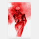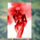 Model posing with red fabric and smoke in monochrome color. Sensual monochrome portrait of a female model posing with a red flowing fabric and surrounded by red smoke