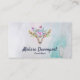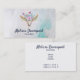 Carte de visite avec un arrière - plan turquoise et pastel. Un crâne animal chic boho avec un bouquet floral sur la tête et des petits papillons floutent autour. modèle de carte de visite 2