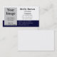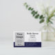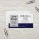 Un modèle de carte de visite en blanc et bleu marine, ajoutez votre propre image ou logo pour customiser ces cartes de visite.