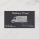 Modèle de carte de visite de conducteur de la livraison avec un arrière - plan blanc de silhouette et de tableau de camion de nourriture. De retour de la carte a la pièce pour des informations supplémentaires. Perfectionnez pour un conducteur, un moteur, un messager, un conducteur, ou un chauffeur de camion de la livraison.