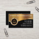 Modèle de carte de profil d'affaires avec simulateur d'éléments de conception or numériquement imprimé y compris l'échelle de ton or de l'emblème de justice, ainsi qu'une mise en page de texte vous pouvez facilement customiser en ligne. Conçu comme une carte de profil d'avocat pour un cabinet d'avocats ou des services juridiques.