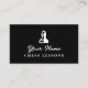 Modèle de carte de visite de professeur de leçons d'échecs. Carte de société élégante pour coach, professeur, tuteur, joueur d'échecs, école, employé, patron, entrepreneur, société de jeu ou d'autres emplois. Design en noir et blanc avec logo filigrane pièce d'échecs et typographie moderne. Faites vos propres cartes de visite pour enseigner le jeu. Également idéal pour l'école, le marketing stratégique, la publicité et autres promotions. Texte personnalisable pour adresse personnalisée, téléphone, courriel et site Web. Carte d'icône cool avec coins arrondis en option ou texture brillante. Démarrez votre entreprise dès aujourd'hui ! NOUSe code ALT pour changer l'icône en un pion, un rook, un évêque, un chevalier, une reine ou un roi. ♕ ♔ ♘ ♗ ♖ ♚ ♙ ♛ ♞ ♝