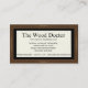 Les effets en bois avec des marqueteries donnent à ce modèle de carte de visite le regard d'un cadre de tableau emmêlé. Utile pour n'importe qui dans les commerces ou le commerçant en bois. L'image est sur un arrière - plan transparent avec le papier de coquille d'oeuf choisi. Choisissez votre propre type de papier. Quelque sélection de papier vous fassiez, elle montrera sous le secteur des textes. Un certain papier coûte plus et effectuera le prix de l'achat de la carte. La disposition est juste une suggestion. Customisez avec votre propres texte, taille et couleur. Utilisez le dos de la carte pour plus d'information d'affaires.