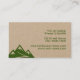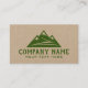 Modèle de carte de visite kraft marron logo montagne. Design rustique avec icône de sommets verts et typographie vintage. Idéal pour les voyages d'affaires, les entreprises de sports randonnées, la location de cabines, le tourisme de la nature, les voyages de ski, les articles de sport de plein air, le kayak, la pêche, la escalade de roche, la randonnée pédestre et plus encore.