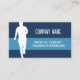 Modèle de carte de visite PT physiothérapeute avec logo de la silhouette du corps humain en marche. Conception moderne de carte d'entreprise pour usage personnel, cours, bureau ou clinique. Ajoutez votre nom et des services tels que des options de massage et d'entraînement. Cartes personnalisées pour professionnels, médecins, entraîneur personnel, assistant médical, entraîneur sportif, Neuroscience spécialiste, médecin, chiropraticien, acupuncture, traitement de guérison des aiguilles secs, soulagement de la douleur musculaire, etc. Couleurs bleues ou personnalisées.