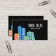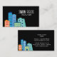 Modèle de carte de visite de location immobilière de ville. Carte de visite moderne avec dessin des immeubles colorés de la ville. Idéal pour le marché de location, architecte, constructeurs, agents immobiliers, courtiers, agence de sous-traitance, expat logement, partage de bureau, espace de travail, commerce et bien plus encore.