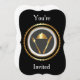 Modèle de carte d'invitation à dîner vierge. Dîner Dîner invitation, personnalisez les informations de votre événement, le style de couleur et plus encore. Or métallisé sur fond noir.