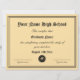 Modèle de diplôme de certificat d'études secondaires officiel avec sceau. Conception élégante avec texte personnalisé et nom du diplômé. Fond beige ou de couleur personnalisée. Impression recto-verso avec logo de barette et bordure fantaisie. Diplôme de fin d'études officiel, garantie, dossier et prix pour les étudiants.