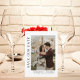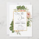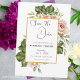 Cette élégante carte de faire-part de mariage comporte un cadre doré avec une rose aquarellée et une branche de verdure comme arrière-plan de modèle. Les mots « Sauvegarder la date » sont écrits en police noire sur fond blanc. Le nom du couple, la date et le lieu du mariage sont également inclus en police noire sur fond blanc. Une photo élégante du couple est ajoutée à la carte avec leurs noms et la date et le lieu du mariage écrits en dessous.