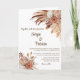 Partagez votre histoire d'amour avec vos invités avec ce faire-part de mariage bohème à plumes et fleurs avec photo. Ce faire-part a une atmosphère chaleureuse et cosy avec un fond marron et un magnifique arrangement floral et de plumes. Vous pouvez télécharger votre photo préférée et personnaliser le texte pour dire ce que vous voulez. Ce faire-part est idéal pour un thème de mariage bohème, rustique ou champêtre.