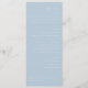 Ce menu de mariage élégant présente un design minimaliste avec un fond bleu pastel doux et un texte blanc, créant une atmosphère sereine et sophistiquée. La mise en page est orientée verticalement avec un alignement centré, utilisant une combinaison de polices cursives et sans-serif pour un toucher de formalité et de clarté. Un espacement généreux entre les sections met en évidence chaque catégorie de manière distincte, tandis que la palette de couleurs discrète et la typographie simple soulignent l'élégance et la finesse. Parfait pour les occasions formelles, ce design se concentre sur la lisibilité et l'ordre, ce qui en fait un choix idéal pour les couples recherchant une présentation épurée mais élégante pour leur jour spécial.