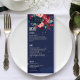 Carte de modèle de menu de fleurs bleues roses bleu marine