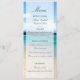 Pour les jeunes mariés attachés de plage, voici un facile de customiser le modèle de menu de mariage pour votre réception. Océan bleu de scintillement à l'arrière-plan avec la plage sablonneuse et les nuages bleus et blancs. Belle photo ; beau pour vos parties de plage !