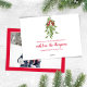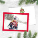 Une carte de Noël photo, avec une verdure rouge et verte, un design simple et minimaliste avec un script de calligraphie élégant, et l'élégance classique, feuillage vert hiver, un élégant minimalisme moderne, avec typographie
