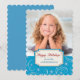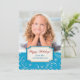 Une bordure de jolies volutes et d'étoiles de Noël blanches sur fond bleu fournit une bordure festive pour votre propre photographie sur cette carte de vacances. Votre photographie couvre la partie supérieure et une bannière à bordure assortie de bleu, de blanc et d'or sépare les deux parties. "Joyeuses Fêtes !" est la première ligne sur la bannière, avec votre propre texte en bleu en dessous. Le dos de la carte est d'un bleu uni assorti. Festif et complémentaire à presque n'importe quelle photographie. Ce design fonctionne bien avec la plupart des formes de cartes proposées.