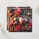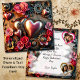 Joli modèle de photo gothique steampunk personnalisé pour carte de la Saint-Valentin. Belles roses roses, engrenages métalliques dorés, argentés et cuivrés. Le dos comporte trois espaces pour les photos en forme de cœur. Vous pouvez également modifier le texte dans la zone de personnalisation.