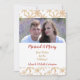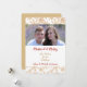 Ce modèle de carte de Noël plate avec photo met vos photographies au centre, avec une jolie bordure à motif de flocons de neige aquarelle or et blanc en haut et en bas. Votre texte personnalisé est en or et rouge assortis au centre sur fond blanc. Nous avons présenté un thème "Mariés & Joyeux", mais tout le texte est facilement personnalisable, de sorte que ce design peut être adapté à n'importe quelle situation, y compris une photographie de famille. Le dos de la carte est en or uni assorti. *Crédit motif flocon de neige à ATArtDigital*
